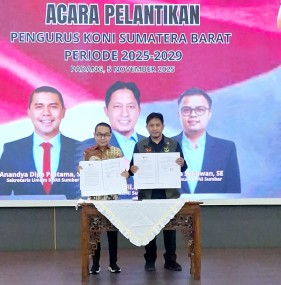 <p>Komite Olahraga Nasional Indonesia (KONI) Sumatera Barat dan Komisi Informasi Sumatera Barat melakukan penandatanganan Memorandum of Understanding atau Nota Kesepa