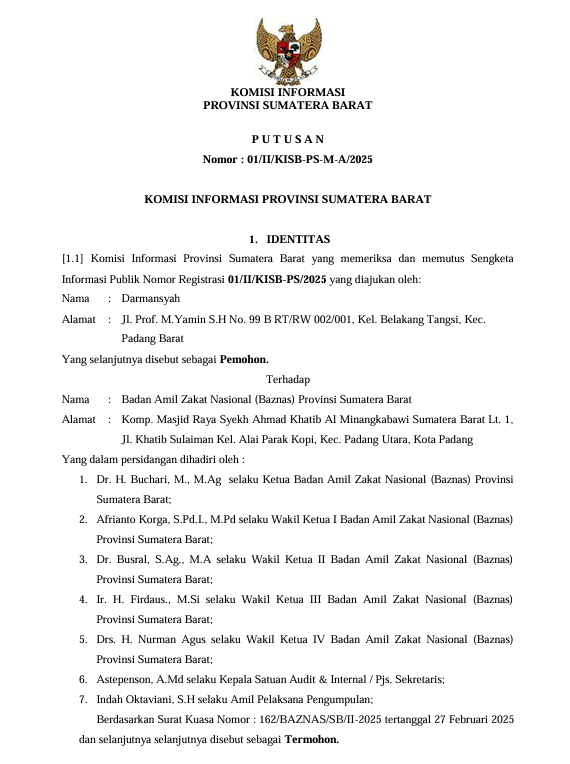 PUTUSAN Nomor : 01/II/KISB-PS-M-A/2025 Putusan Sidang Ajudikasi Admin 25 September 2025 12:22:00 WIB 43 UNDUH DOKUMEN